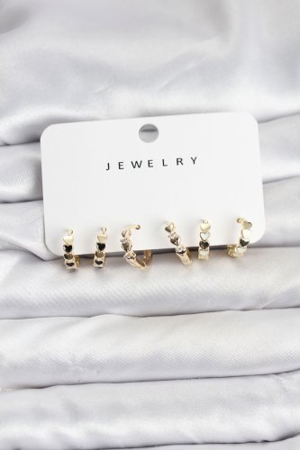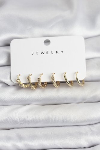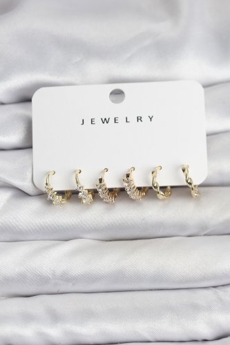 Zirkon Taşlı Gold Renk Pirinç Kadın Küpe Seti
