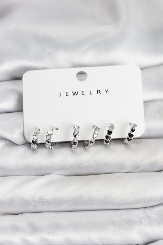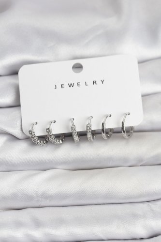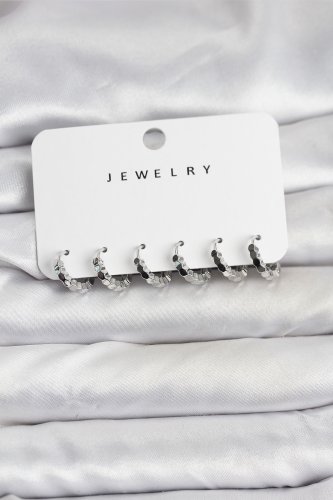 Gümüş Renk Pirinç Halka Kadın Küpe Seti