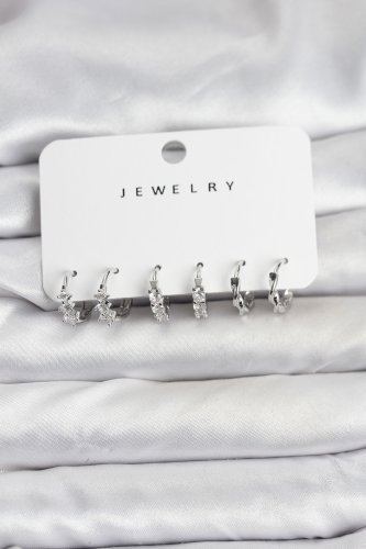 Zirkon Taşlı Gümüş Renk Pirinç Kadın Küpe Seti