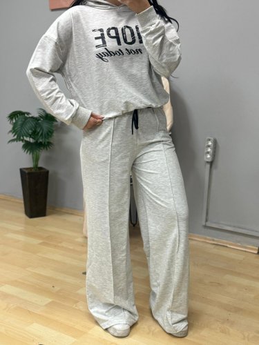 Kadın uzun kollu Nope baskılı beli ribanalı ikili takım