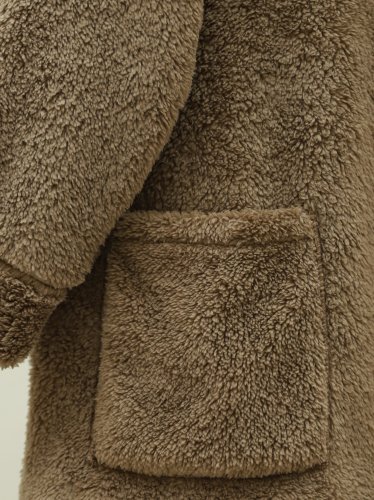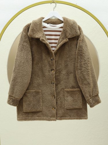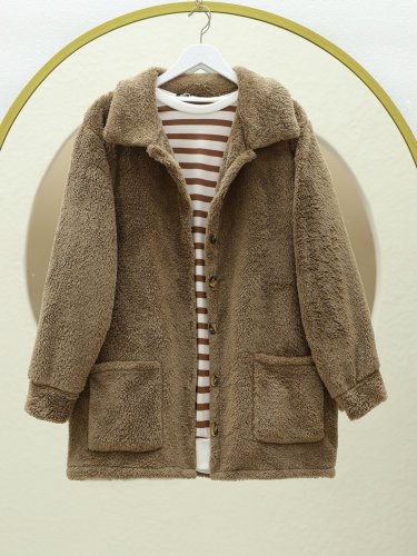 • Boydan Düğmeli Cepli Pelüş Ceket Kahve