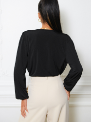 Kadın uzun kollu kruvaze yaka sandy bluz