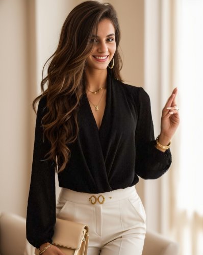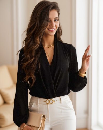 • Kadın uzun kollu kruvaze yaka sandy bluz