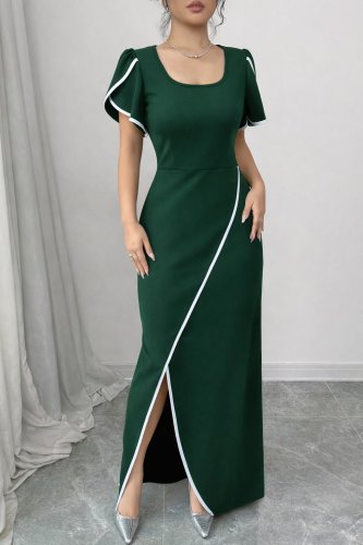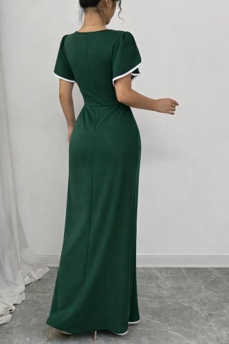 • Kadın kısa kollu kare yakalı önden çapraz kesim detaylı krep elbise