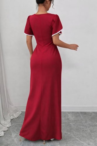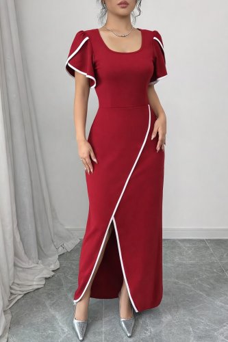 • Kadın kısa kollu kare yakalı önden çapraz kesim detaylı krep elbise
