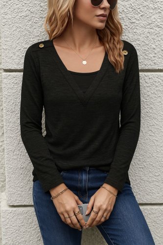 • Kadın uzun kollu v yaka düğme detaylı yumoş bluz
