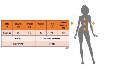 • Modelin Ölçüleri: Boy:165, Kilo:55, Göğüs:90, Bel:72, Kalça: 100
