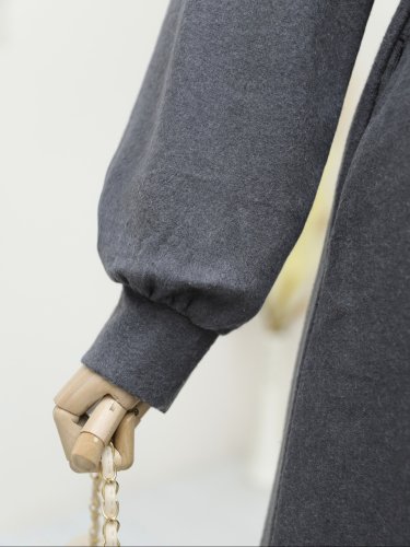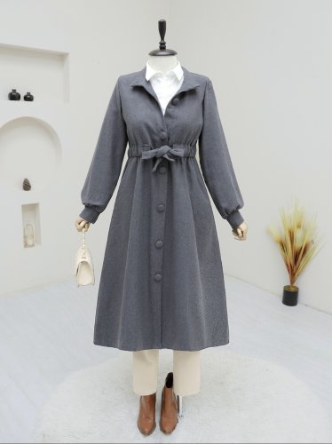 • Belden Bağlamalı Top Düğmeli Kaşe Kaban Füme