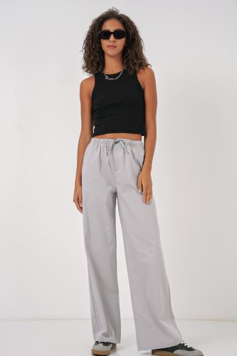 • 6690 Bol Paça Yüksek Bel Pantolon Gri